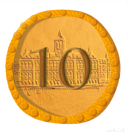 Das Spielbrett zeigt die Stadt Amsterdam mit ihren Grachten. Die Stadt macht den Fluss von Kredit durch die Wirtschaft sichtbar und dient gleichzeitig als spielerische Bilanz.