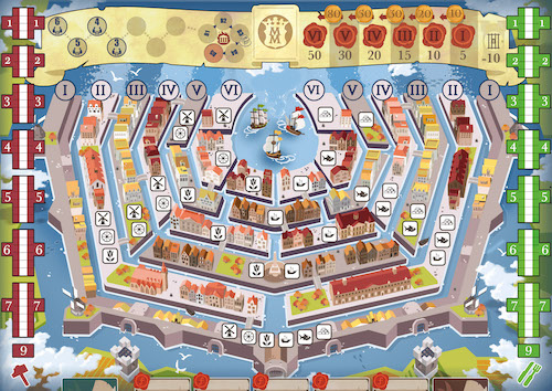 Игровое поле изображает город Амстердам с его каналами. Город визуализирует поток кредитов в экономике и одновременно служит игровым балансовым отчётом.